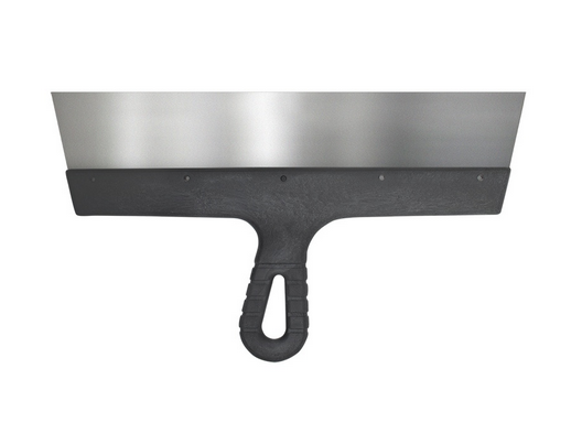 В принципе очень хороший, удобный и прочный шпатель, который используется при выравнивании стен гипсовыми либо цементно-песчаными смесями и растворами.