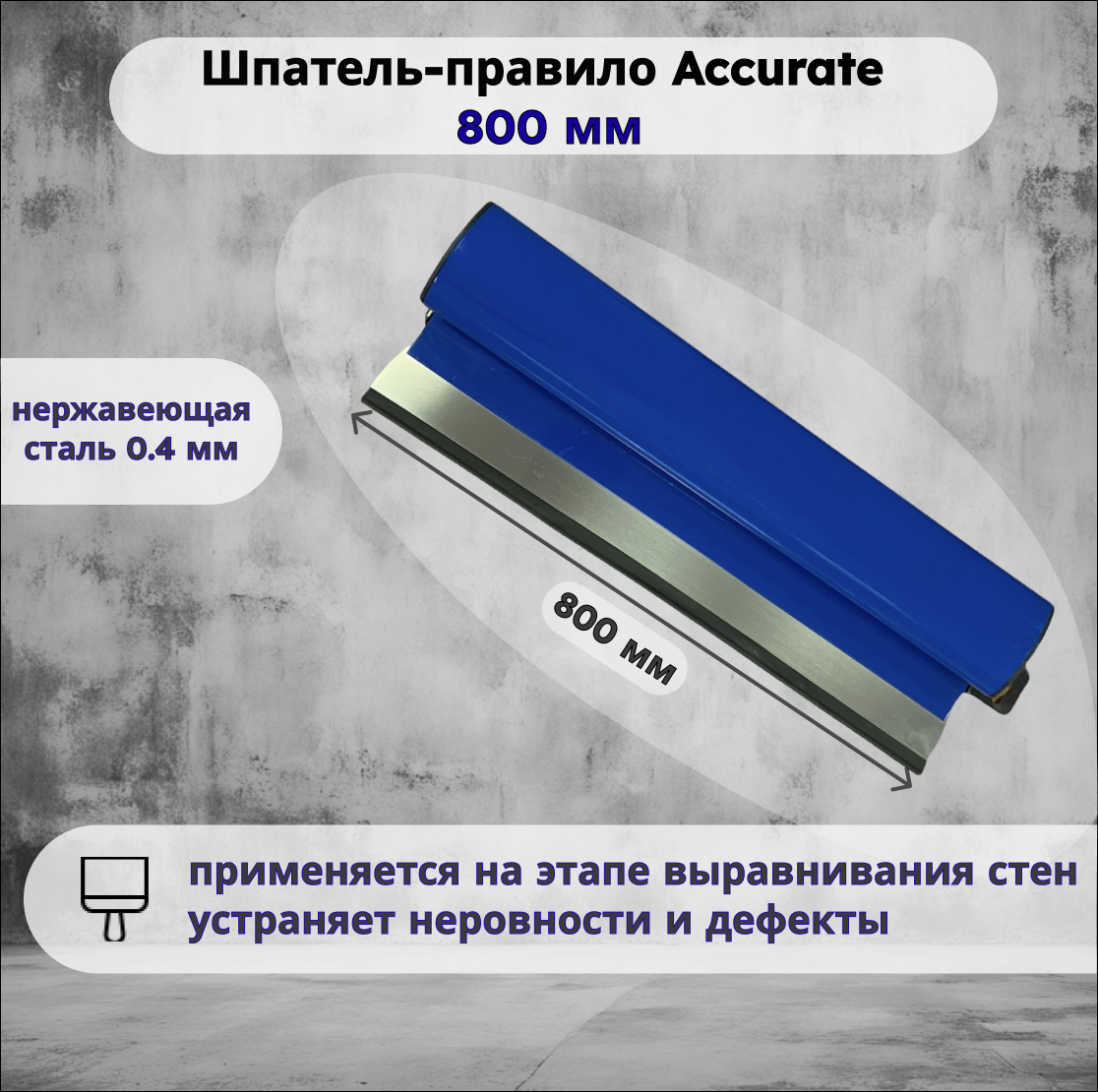 Шпатель-правило Accurate, 800 мм, нержав.ст. 0,4мм с жестко закр.лезвием