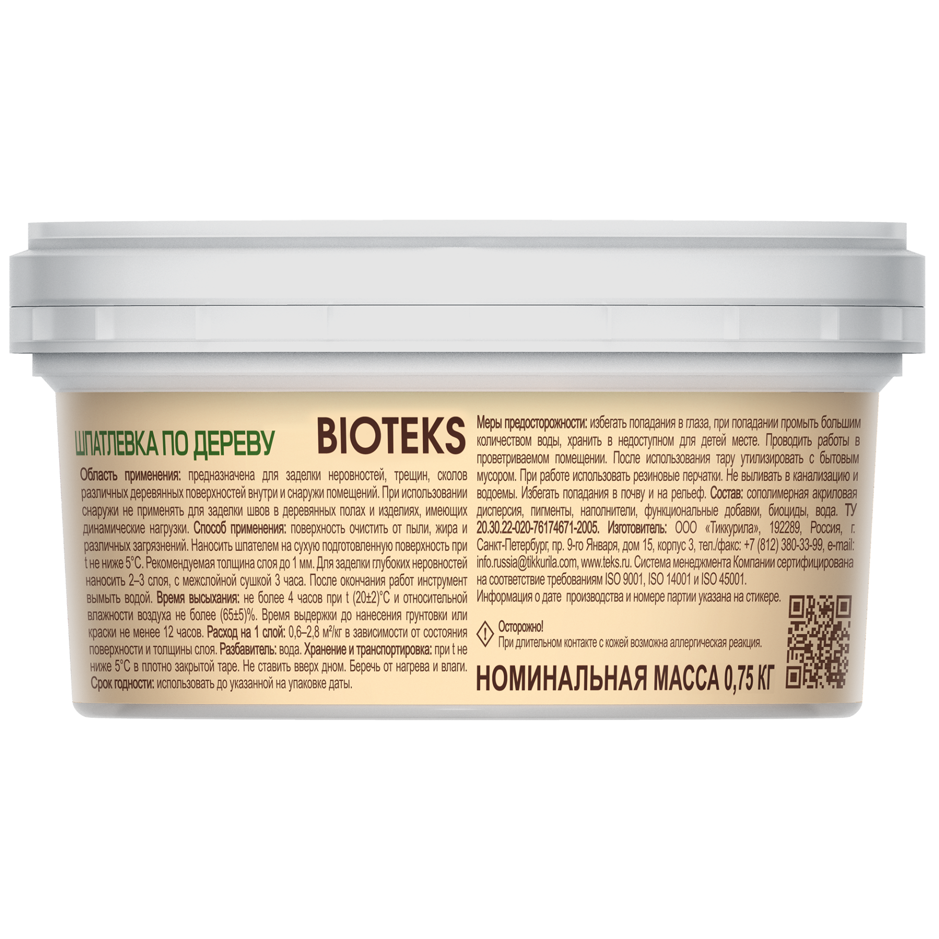 Шпатлевка по дереву BIOTEKS - Шпатлевка готовая к применению, для заделки неровностей различных деревянных поверхностей (мебель, двери, пол, панельные стены, окна). Возможно использование шпатлевки для наружных работ, а также во влажных помещениях благодаря свойству влагостойкости.