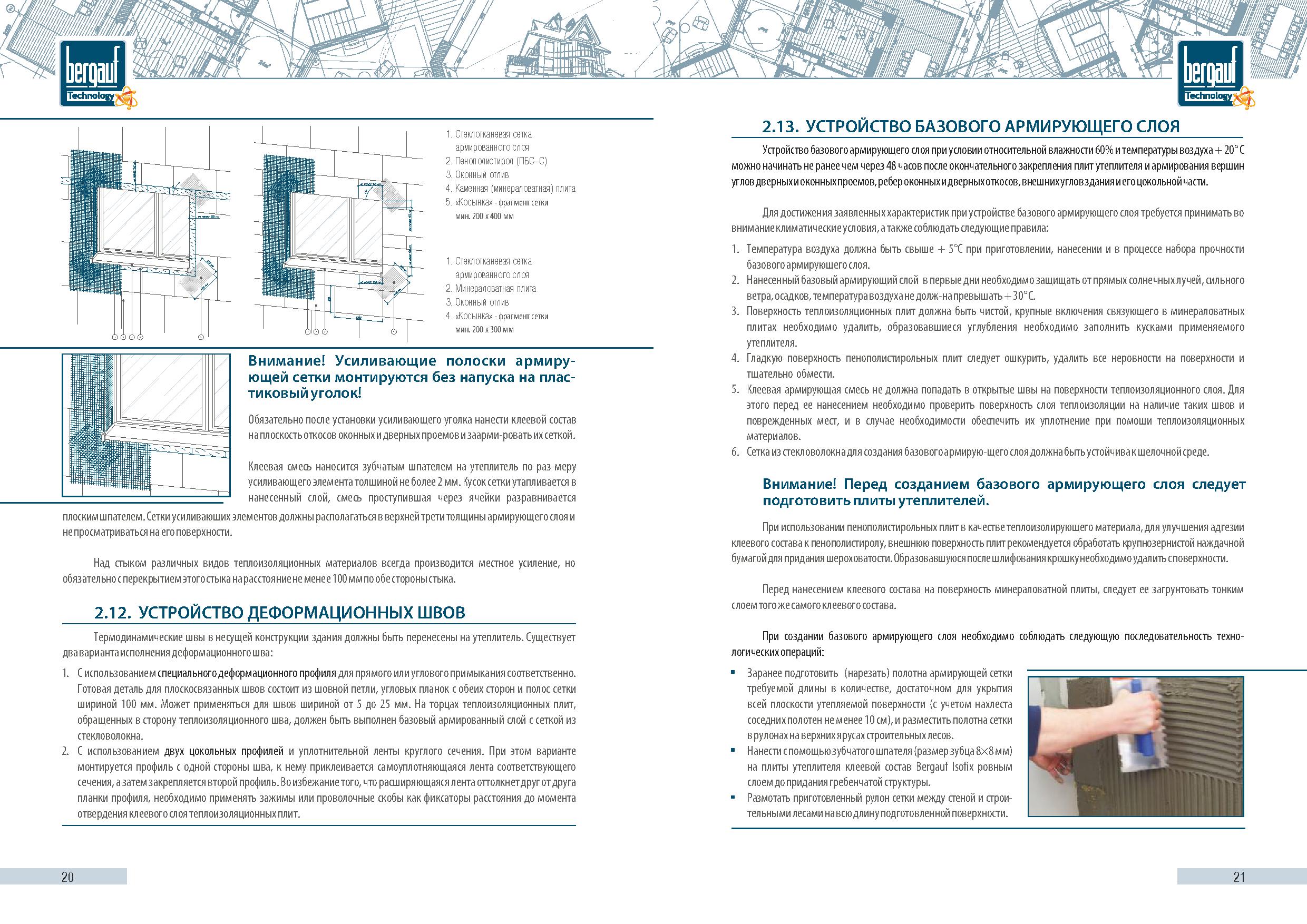 Проектирование и монтаж материала Bergauf CRYSTAL в системах утепления фасадов Bergauf Technology PS или MW следует выполнять в соответствии с альбомами технических решений «Bergauf Technology PS» и «Bergauf Technology MW», а также руководствуясь инструкцией по монтажу систем наружной теплоизоляции фасадов зданий Bergauf Technology PS и MW.