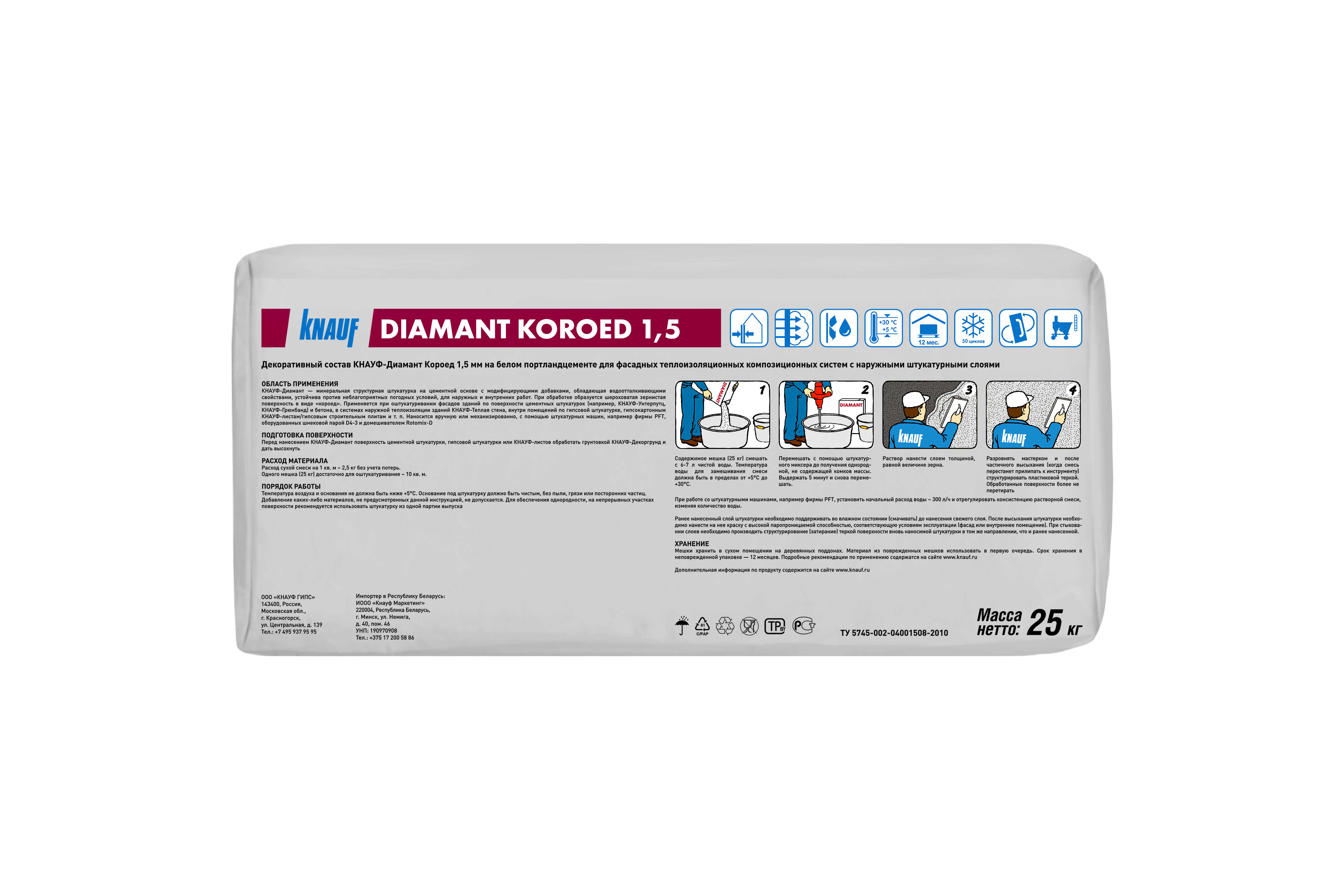 Штукатурка КНАУФ Диамант цементная декоративная короед 1,5 мм 25кг