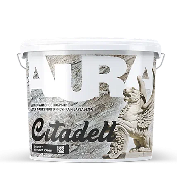 Декоративное покрытие для фактурного рисунка и барельефа «Citadell» - предназначена для выполнения защитно-отделочных работ на минеральных основаниях (бетонных, цементных, цементно-известковых и др.) внутри помещений. Применяется для выполнения декоративных покрытий, имитирующих эффект грубого камня, фактурного рисунка и барельефа.