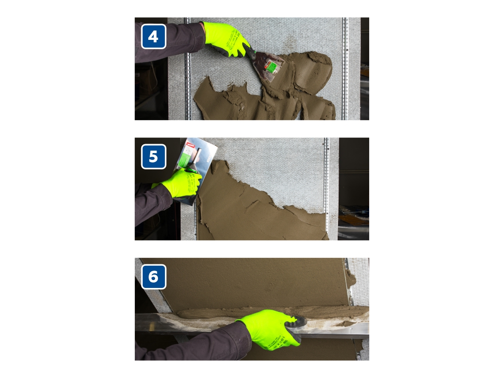 - C помощью кельмы или стального шпателя нанесите смесь на основание, разравняйте с помощью правила (или терки)