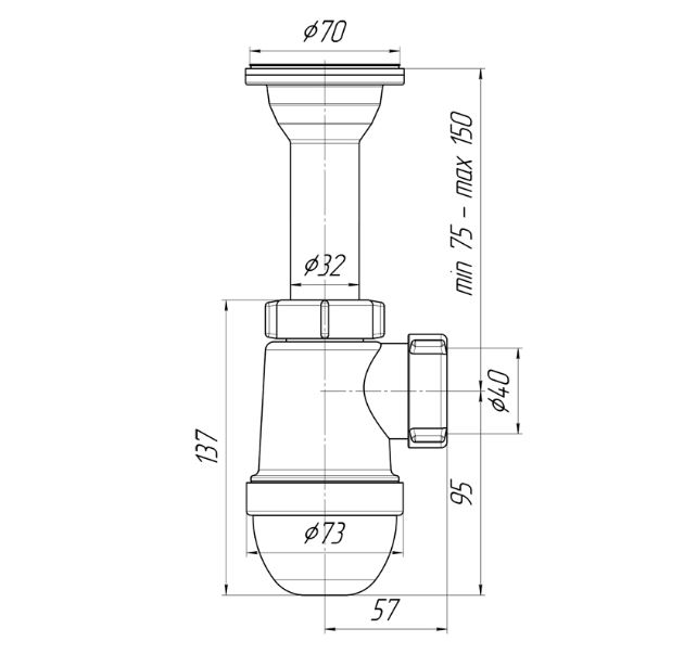 Сифон для раковины бутылочного типа. Выход для подключения канализации - 40мм.