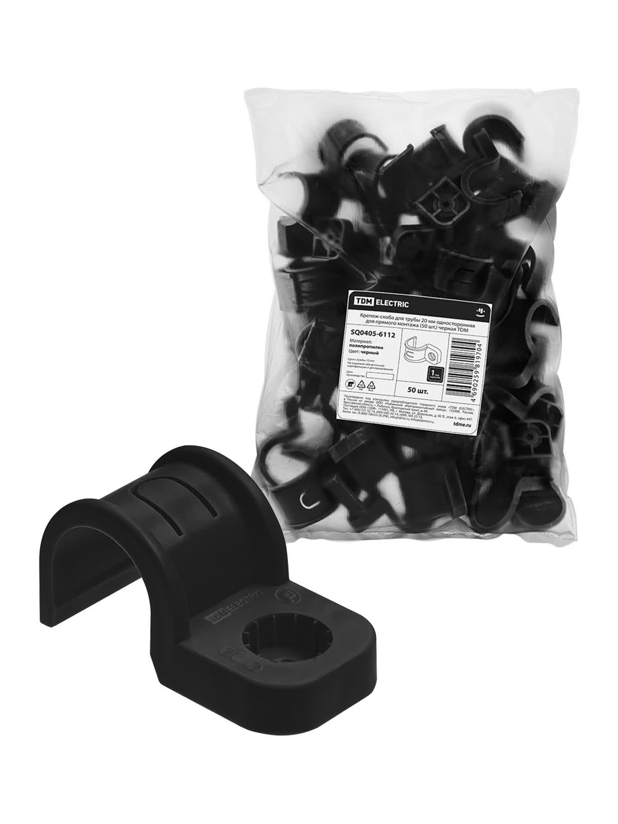 Скоба крепежная для гофрированной трубы d=20мм, черный (уп.50шт)