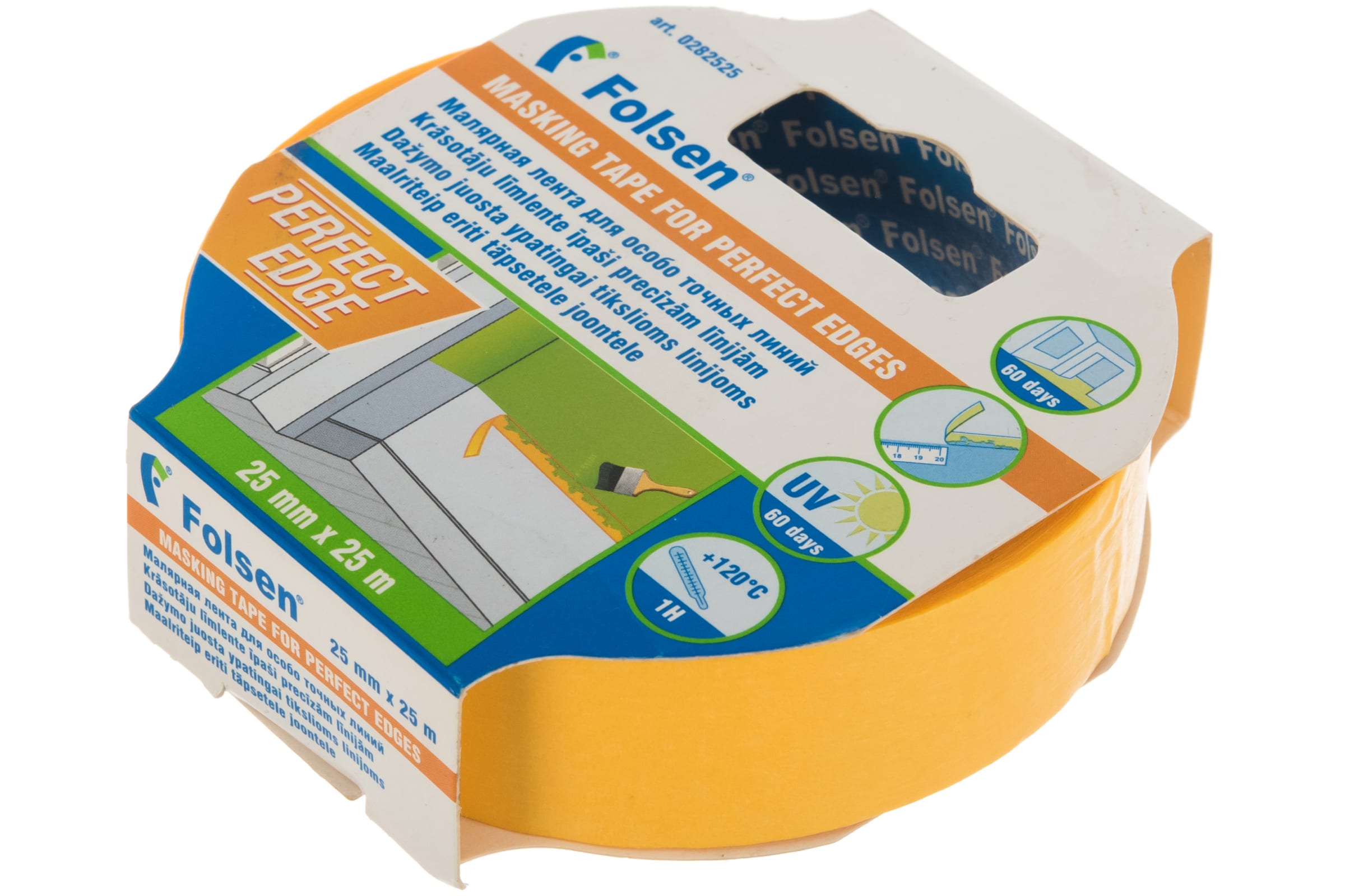 Скотч малярный для особо точных линий FOLSEN 25ммх25м желтый