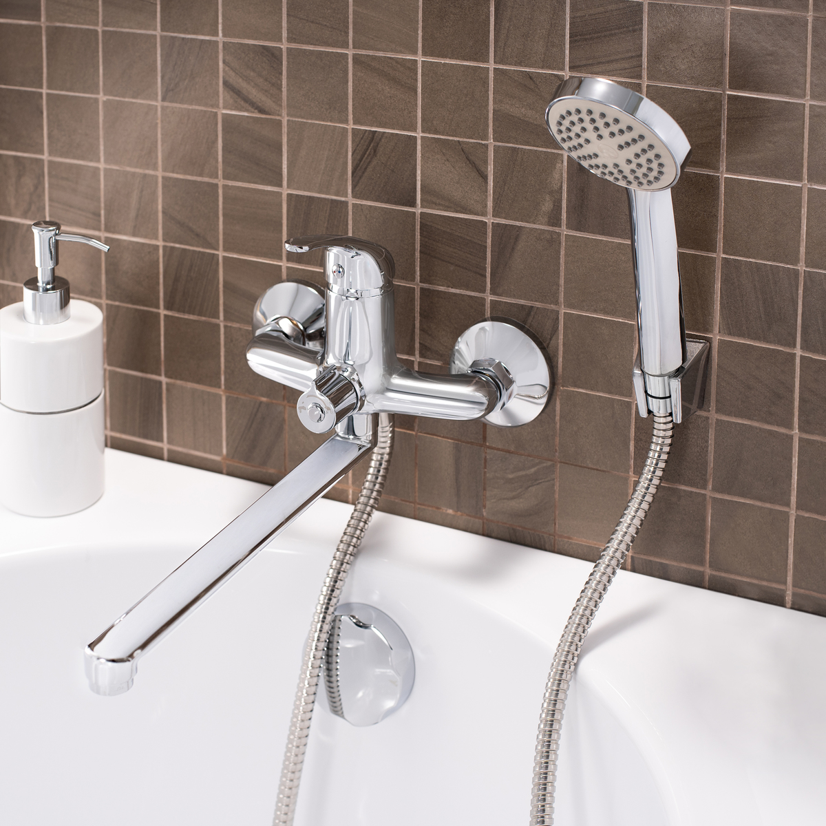 Применение смесителя идеально подходит для домашних ванных, гостиниц, общественных объектов и напора 1-5 бар, обеспечивая комфортное наполнение ванны с поворотом излива или душ с переключением режимов и минимальным шумом.