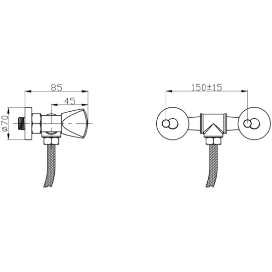 Согласно ГОСТ и стандартам сантехнического оборудования, смеситель предназначен для настенной установки с двумя вентилями, что гарантирует точную регулировку напора и температуры горячей/холодной воды, прочное механическое соединение, устойчивое к вибрациям и нагрузкам.