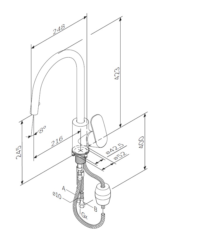 Смеситель для кухни однорычажный AmPm Like с вытяжным изливом