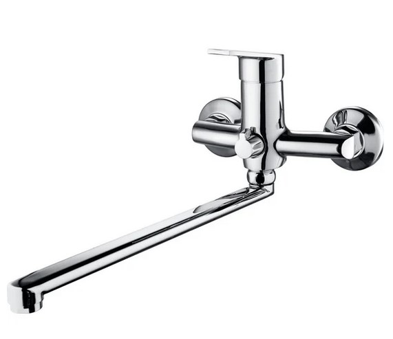 Функциональный однорычажный смеситель для ванной комнаты с длинным поворотным изливом обладает стильными округлыми формами. Наличие длинного поворотного излива делает модель универсальной: она используется для обеспечения водой как ванны, так и раковины – актуально в небольшом санузле.