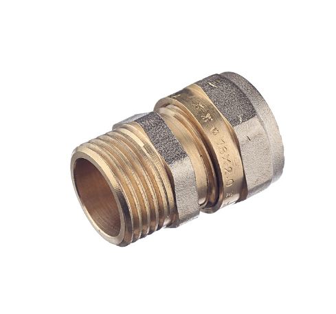 Соединитель для металлопластика обжим 16мм -1/2дюйма НР - используется для подключения металлопластиковых труб с диаметром 16мм к другим системам с наружной резьбой 1/2'', с помощью резьбового соединения.