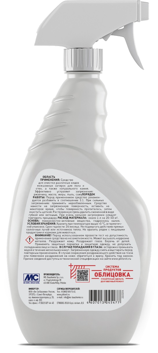 Средство для очистки межшовных затирок и натурального камня Плитонит 0,5л - специальное средство для очистки различных видов межшовных затирок для пола и стен, а также натурального камня. Эффективно устраняет загрязнения: ржавчину, масла, жиры, пыль, сажу