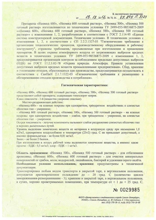 Рекомендации по применению удалителя плесени NEOMID 600 (готовый раствор):