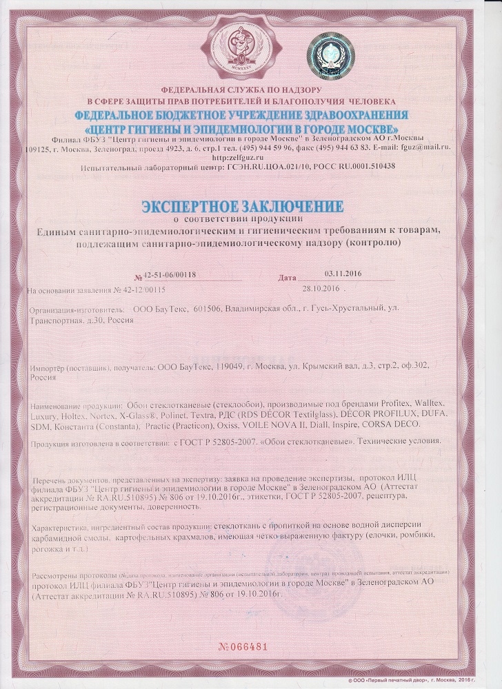 Здравствуйте, покупали у вас в магазине "Материк" стеклообои от "BauTex". Хороший и качественный отделочный материал. С ними удобно работать и можно красить. Также они не горючи и экологичные.