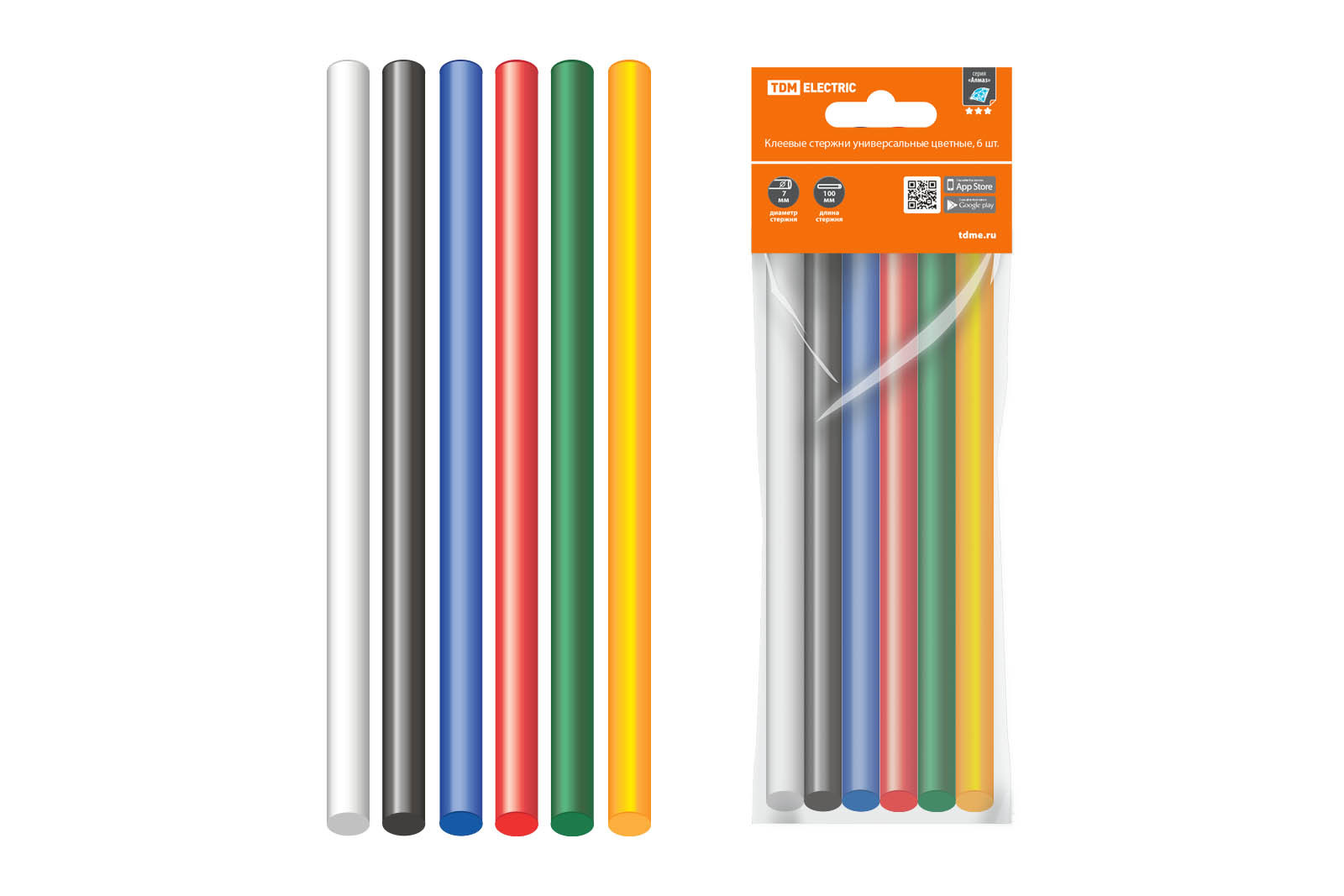 Стержни для клеевого пистолета TDM цветные, 7x100 мм, 6 шт/уп