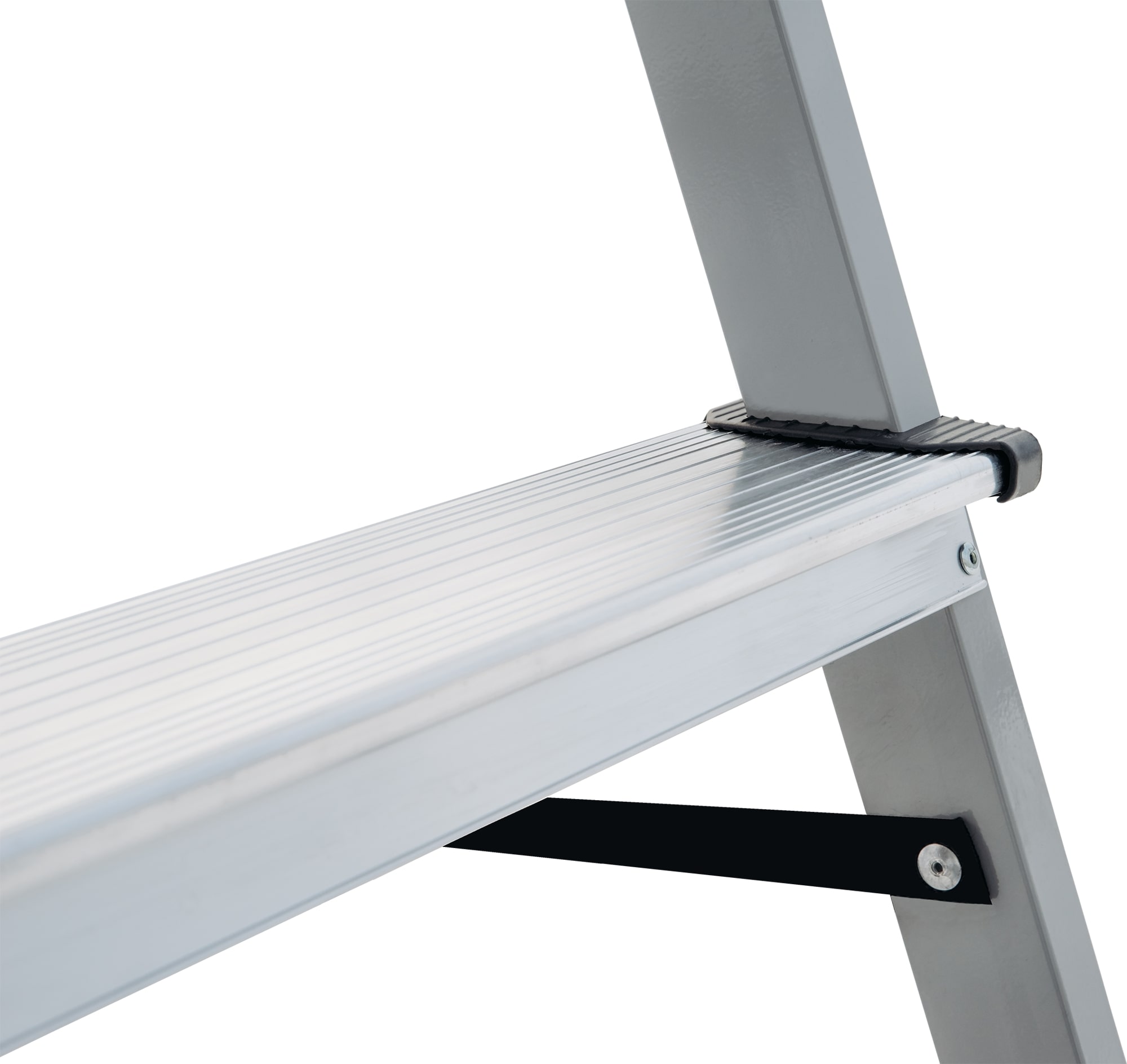 • Алюминиевые ступени из экструдированного профиля и прочная заклёпочная фиксация гарантируют статическую и динамическую надежность.