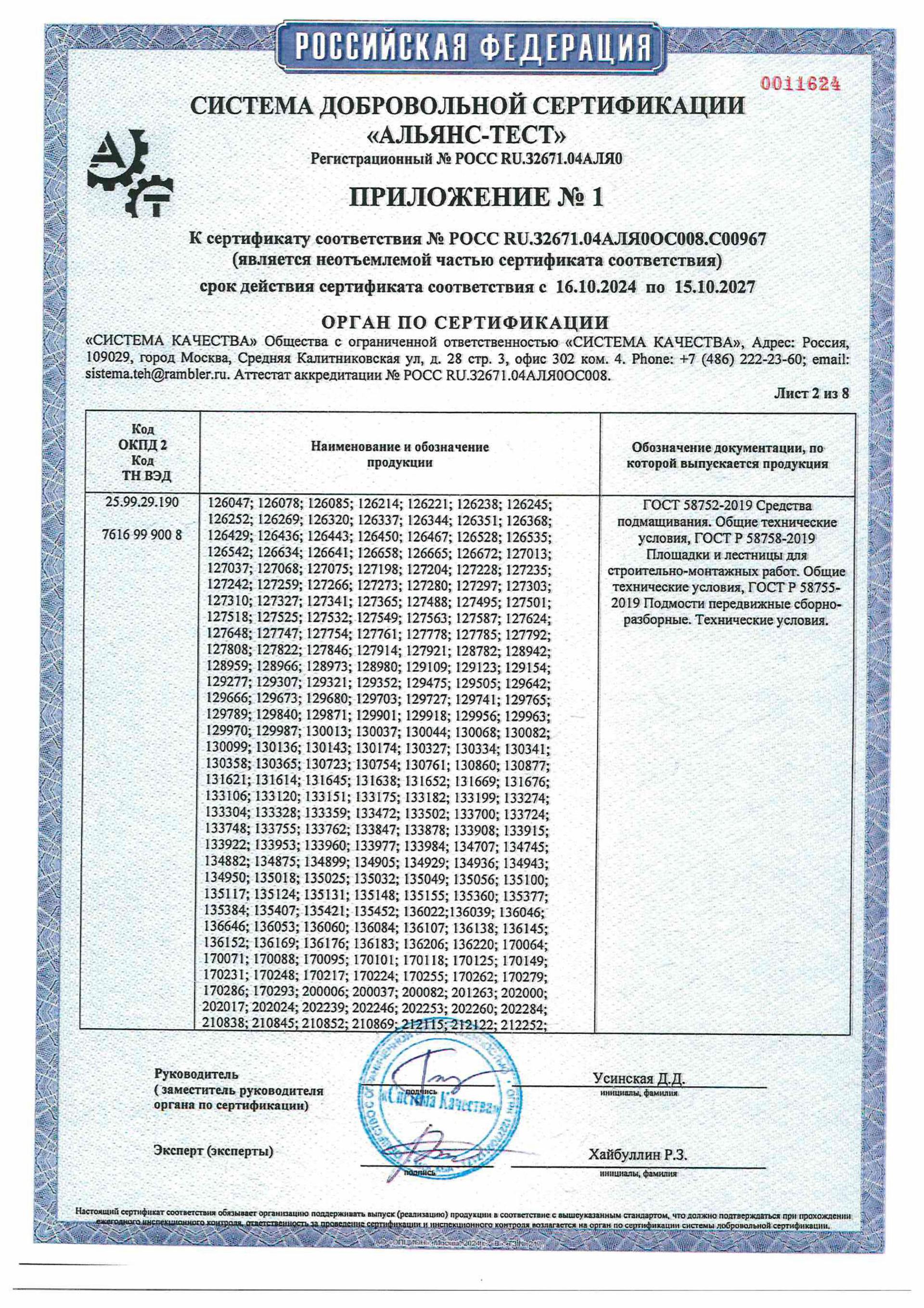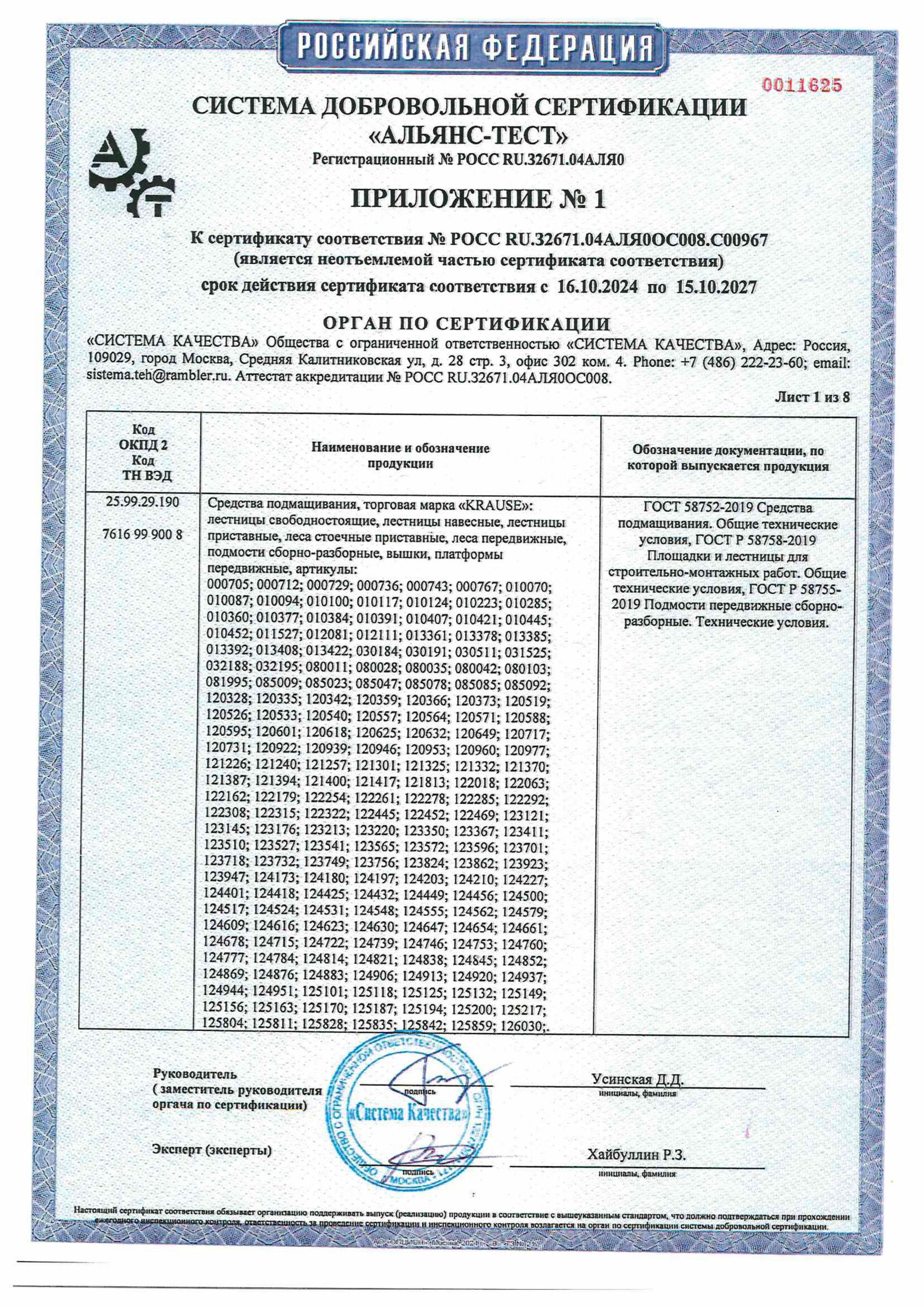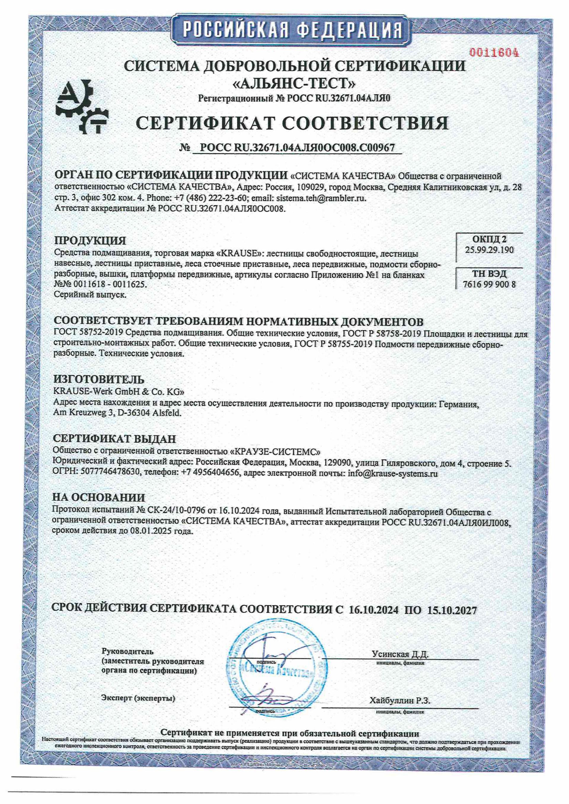 • Продукт сертифицирован в строгом соответствии с ГОСТ Р 58752-2019 и DIN EN 131, что подтверждает высокие стандарты безопасности и качества.