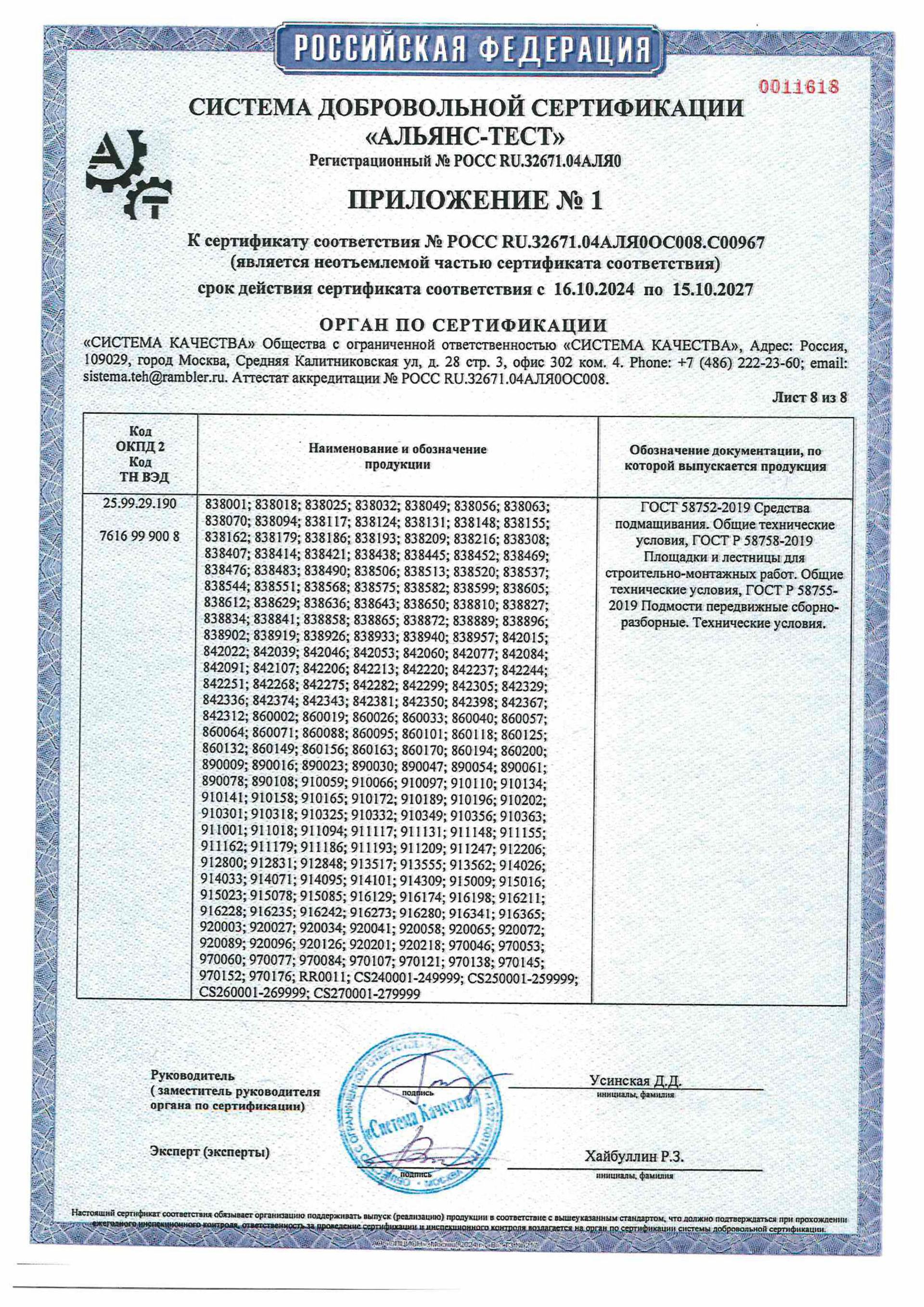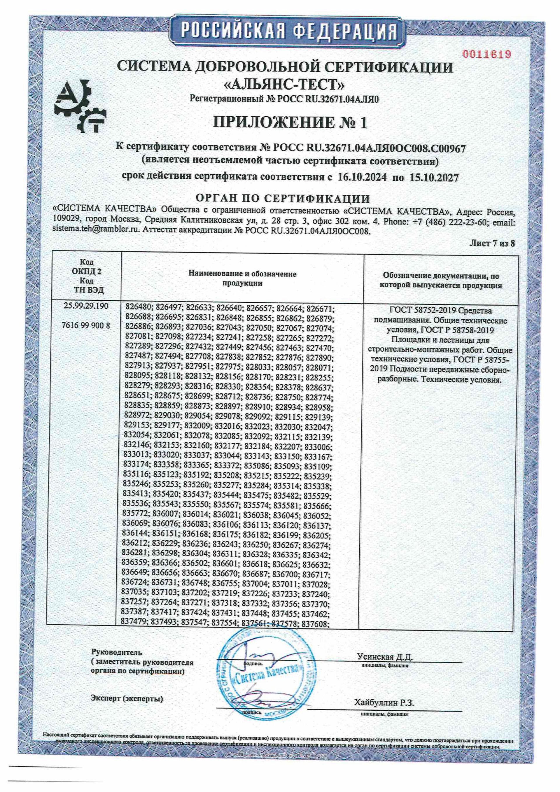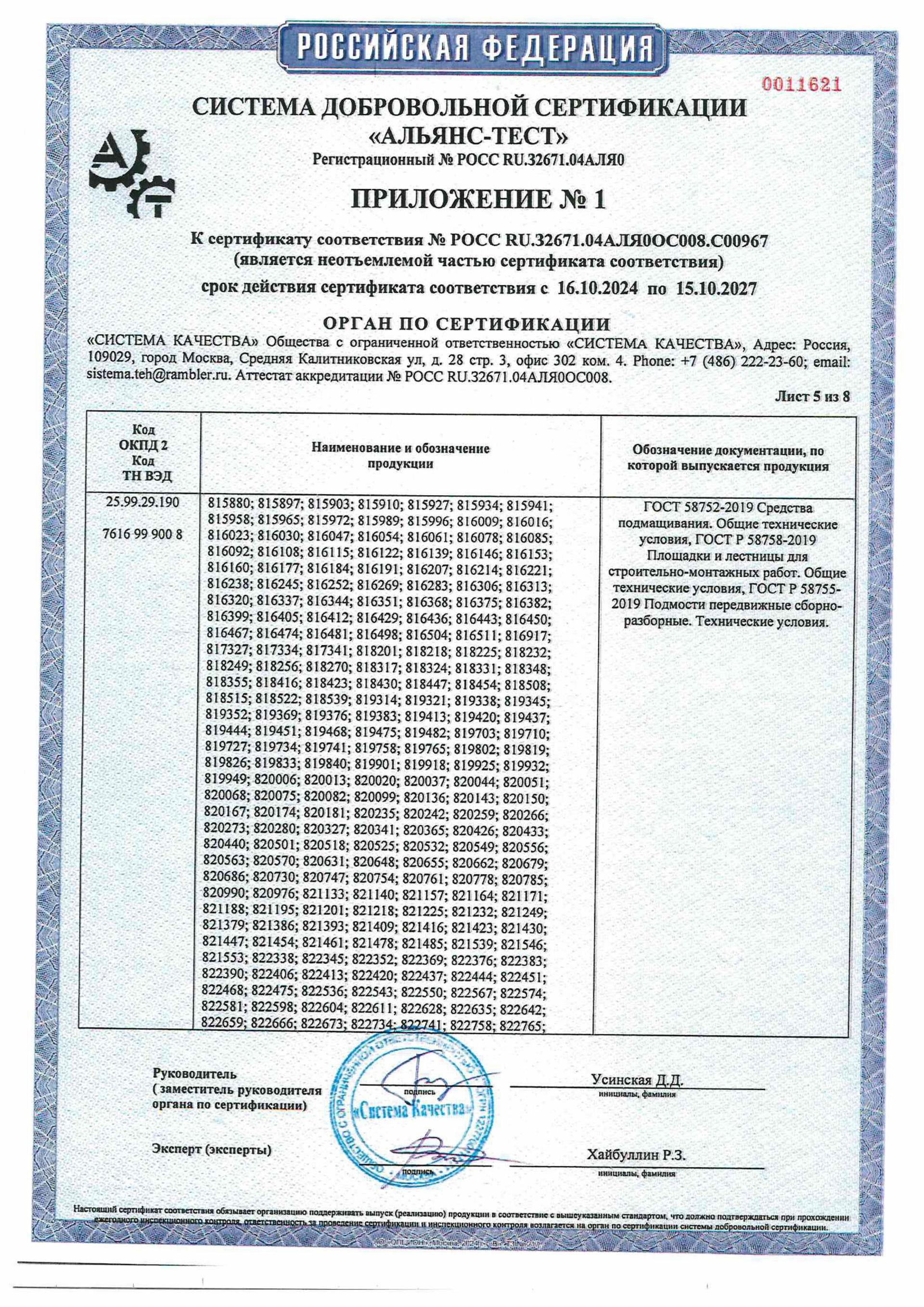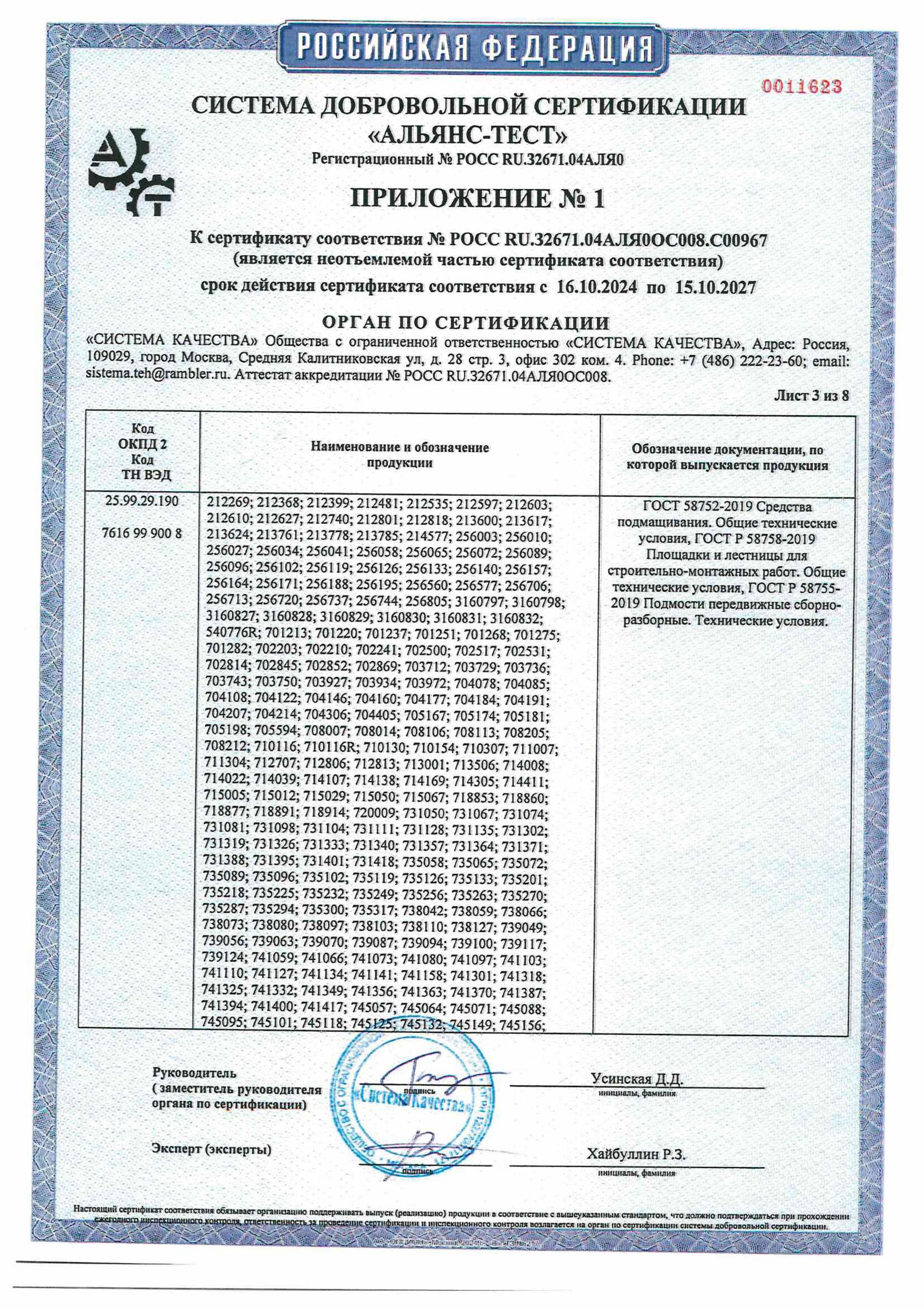 • Продукт сертифицирован в строгом соответствии с ГОСТ Р 58752-2019 и DIN EN 131, что подтверждает высокие стандарты безопасности и качества.