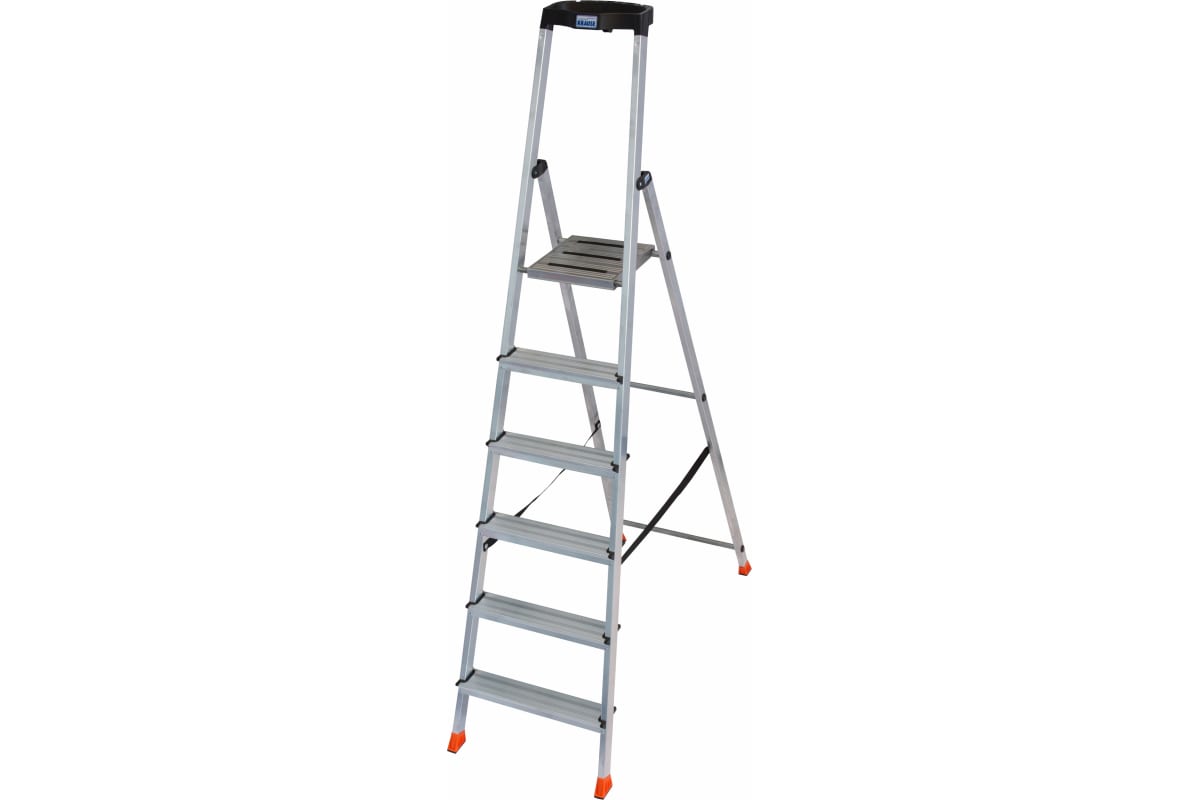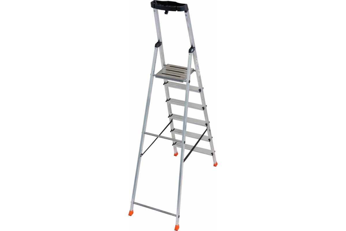 Стремянка алюминиевая с полочкой 6 ступеней KRAUSE SAFETY 128966 – предназначена для выполнения краткосрочных строительных, ремонтных, отделочных и других видов работ. Будет полезна, как и на производствах, строительных площадках, ремонтных мастерских, так и в домашних условиях. Эта стремянка соответствует строгим европейским стандартам безопасности, что делает её отличным выбором как для профессионалов, так и для домашних мастеров. Дополнительное удобство обеспечивает нескользящая площадка и эргономическая полка для инструмента с крюками для ведра и двумя держателями кабеля.