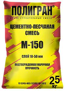 - М-150. Подходят для заделки щелей, выравнивания поверхностей, бетонирования лестниц. В зависимости от особенностей применения они бывают универсальными, кладочными, а также штукатурными;