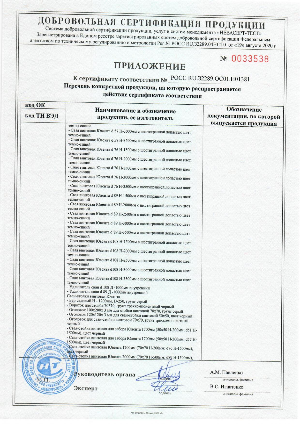 Сваи обработаны трехкомпонентным покрытием (грунт, антиржавчина и эмаль). Лопасть изготовлена из плоского листа толщиной 3,5мм путем резки на плазменном или лазерном станке и гибки на гидравлическом прессе. Она имеет специально рассчитанный шаг винта и приварена к свае под определенным углом.