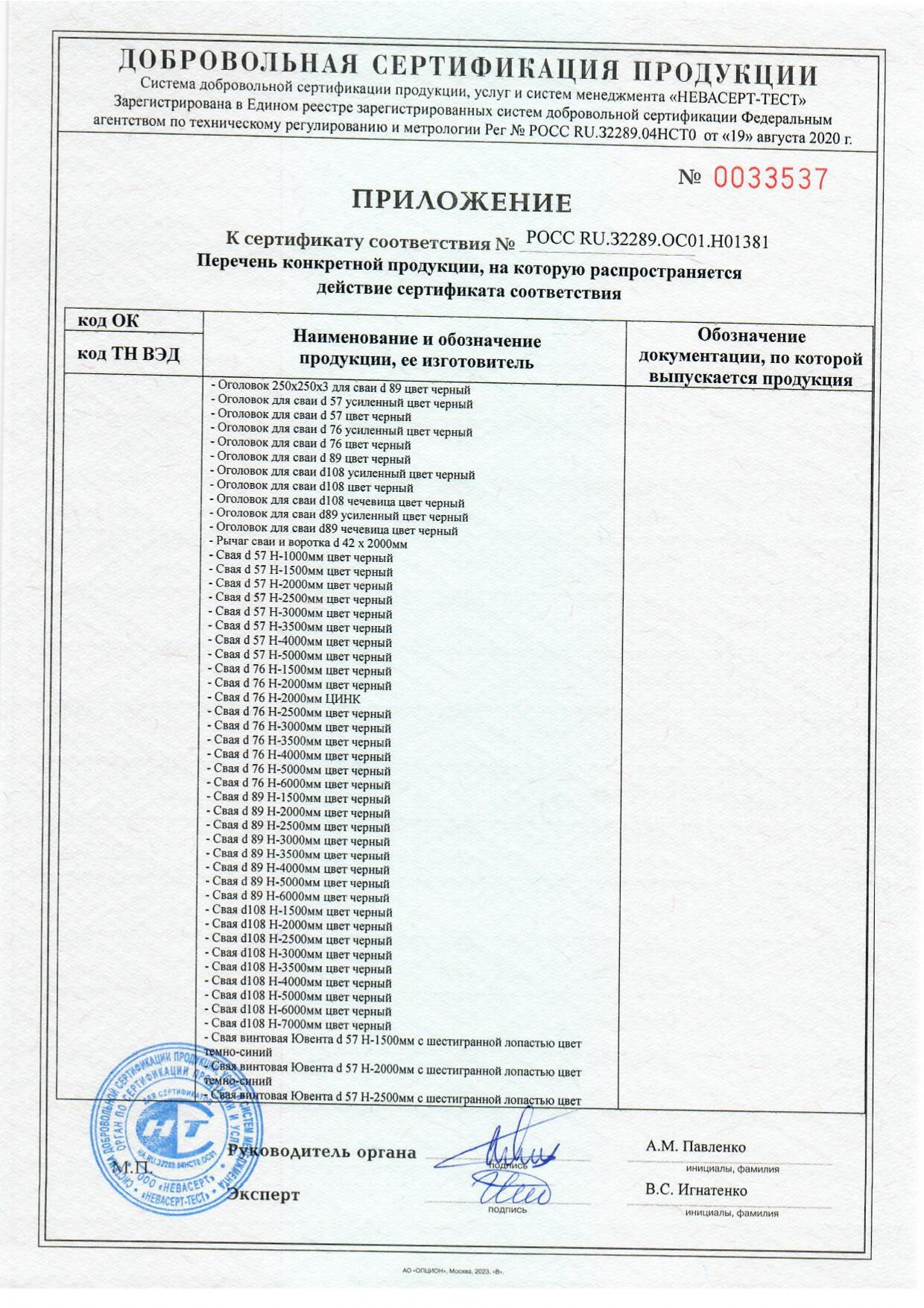 Сваи обработаны трехкомпонентным покрытием (грунт, антиржавчина и эмаль). Лопасть изготовлена из плоского листа толщиной 2,5мм путем резки на плазменном или лазерном станке и гибки на гидравлическом прессе. Она имеет специально рассчитанный шаг винта и приварена к свае под определенным углом.