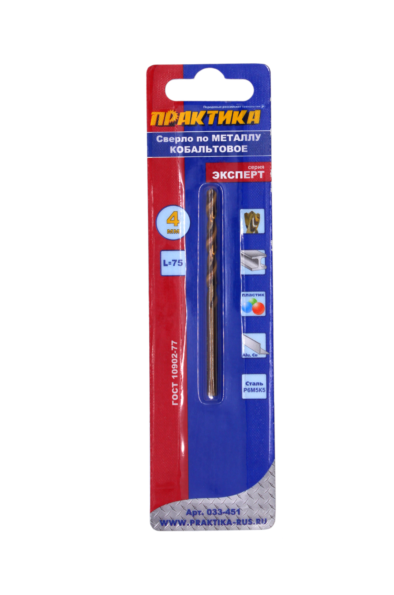 Сверло по металлу кобальтовое Практика 4,0 х 75 мм