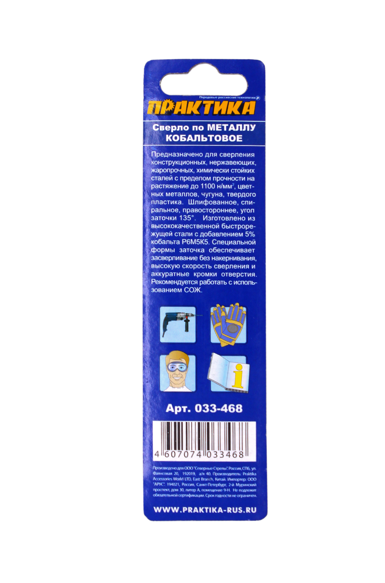 Предназначено для сверления отверстий в изделиях из металла и пластика. Устанавливается на дрели и перфораторы, оборудованные зажимным патроном Благодаря 5% содержанию кобальта выдерживает высокие нагрузки при сверлении металлических конструкций. Полностью шлифовальные. Угол заточки острия 135 градусов.