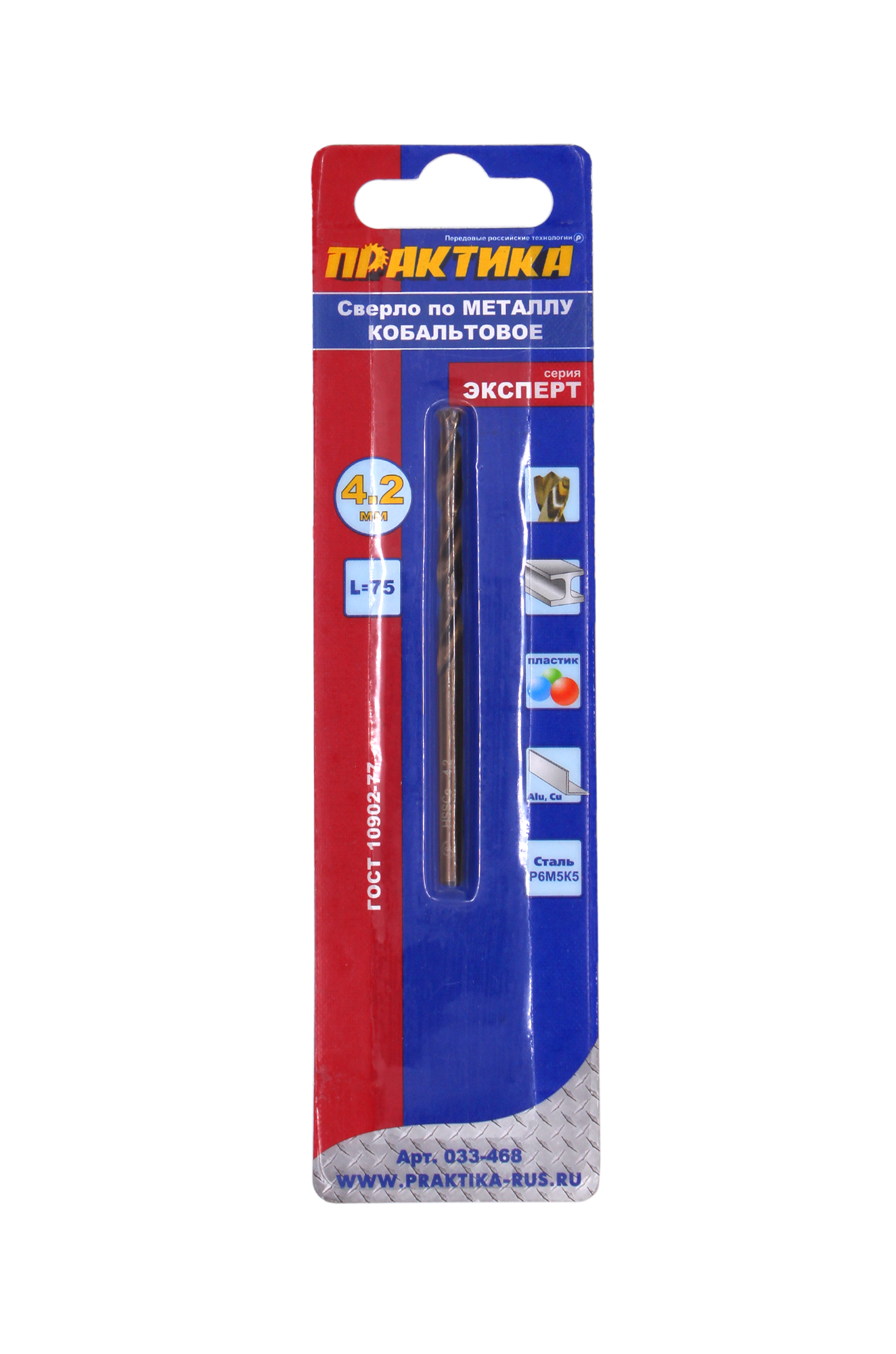 Сверло по металлу кобальтовое Практика 4,2 х 75 мм
