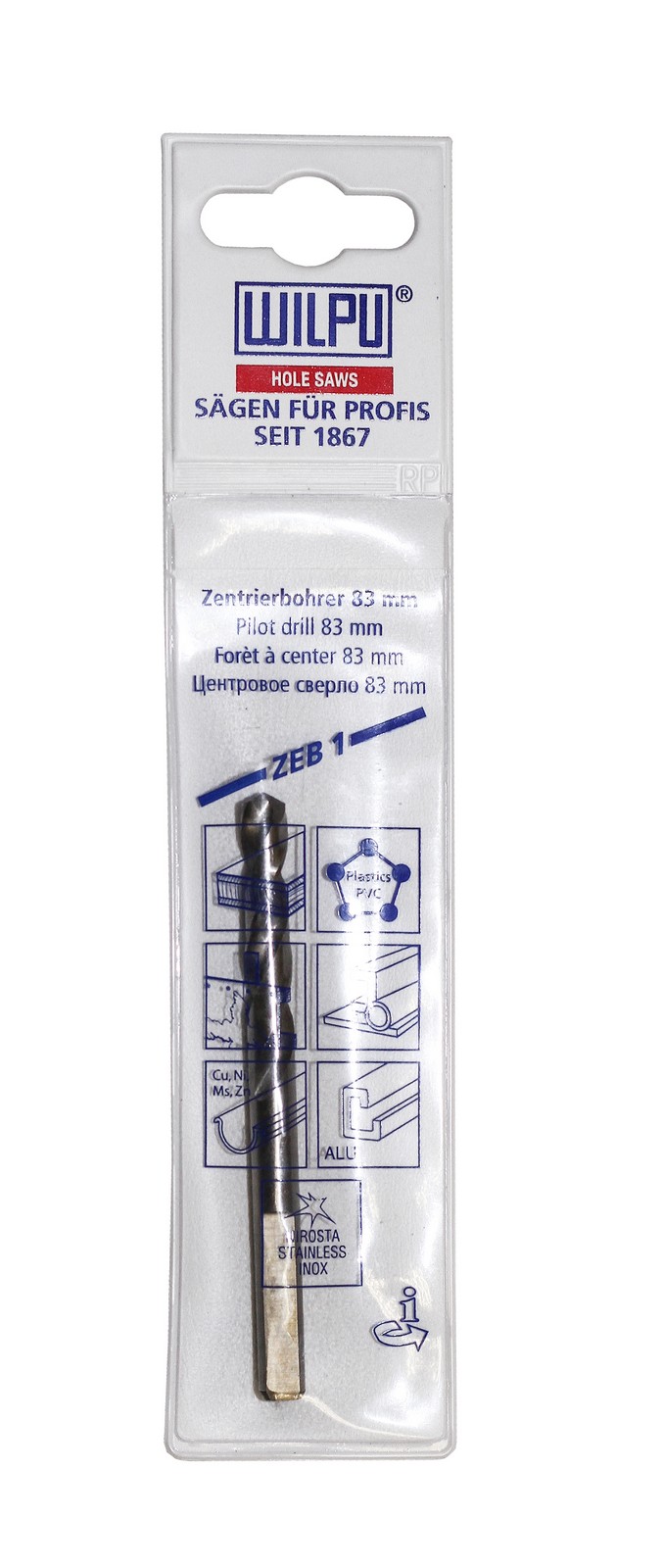 Центрирующее сверло используется для точного засверливания при работе с коронками Wilpu. Длина сверла 83 мм