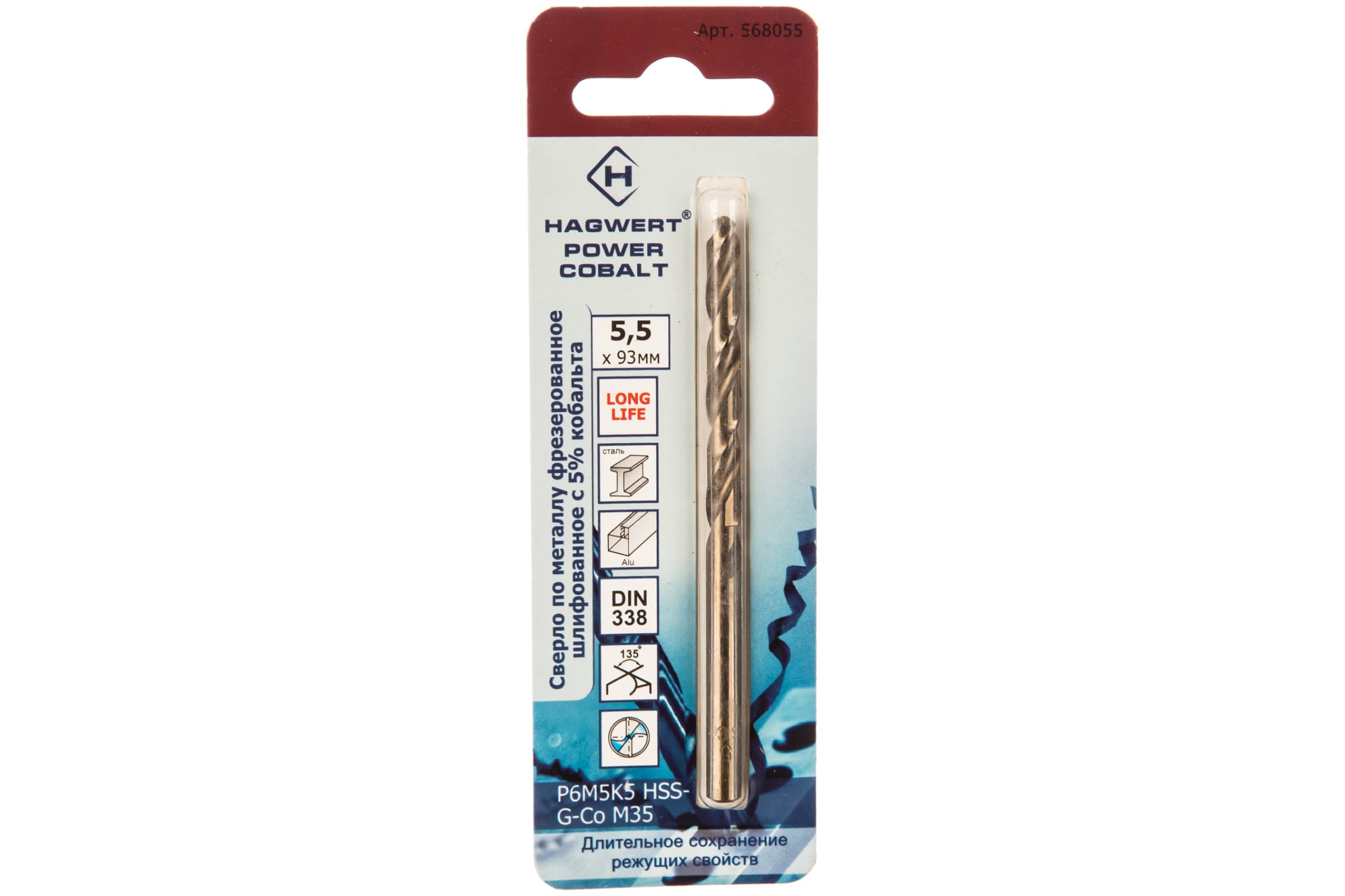 Сверло по металлу кобальтовое Hagwert 5,5 х 93 мм