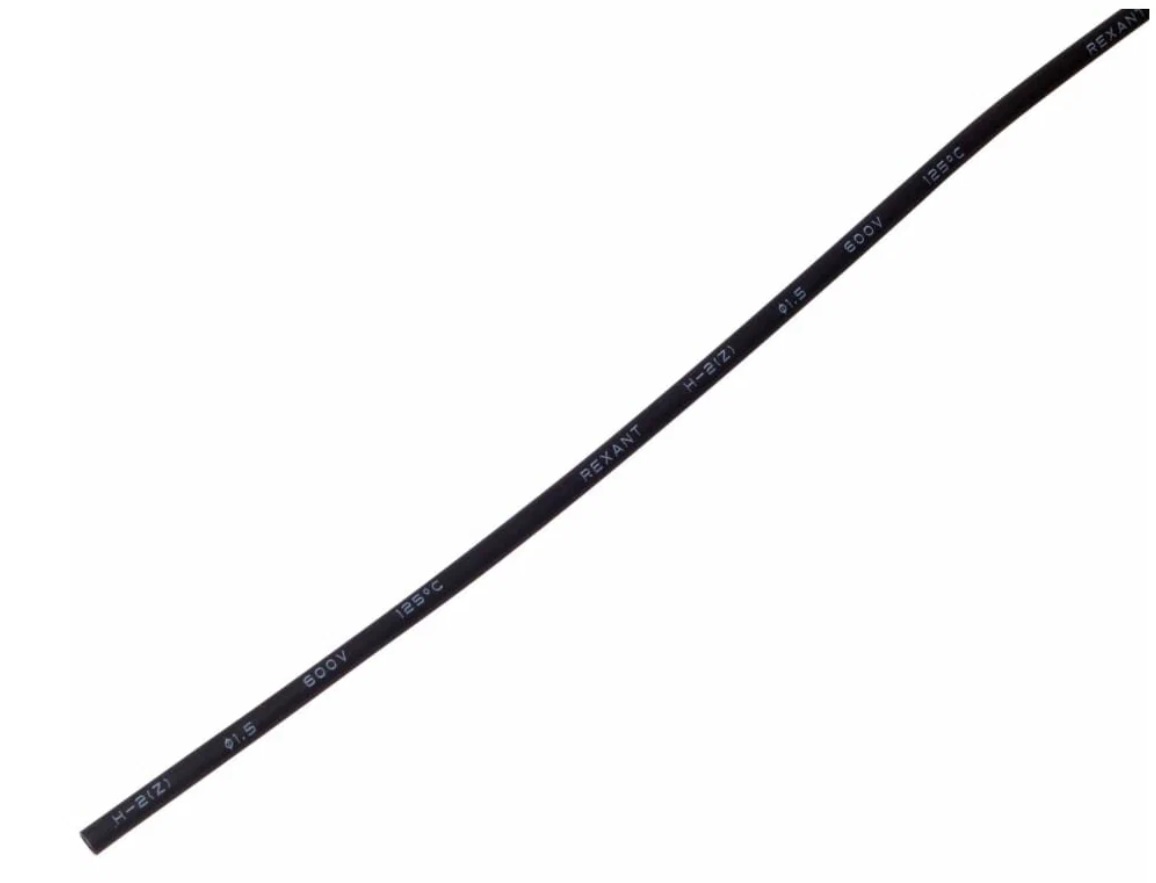 Трубка термоусаживаемая REXANT ТУТнг 1,5/0,75 мм черная 1м