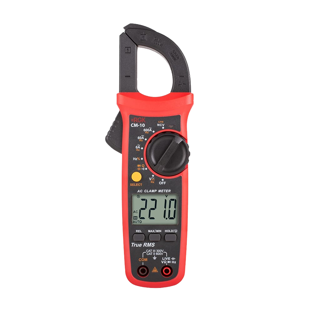 Цифровые токовые клещи RGK CM-10 - это удобный и безопасный прибор для измерения больших значений силы переменного тока вплоть до 600А, дополнительно снабженный функциями мультиметра. Максимальный диаметр проводников, с которыми может работать эта модель - 28 мм. Основное преимущество токовых клещей заключается в бесконтактном методе замеров, благодаря чему не требуется отключать провода или производить врезку в изоляцию. Прибор в первую очередь предназначен для специалистов в сфере электроэнергетики, но также может решить и множество бытовых задач.