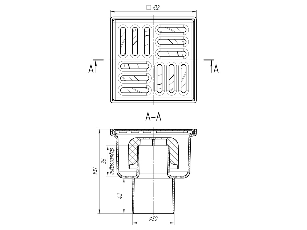 Трап АНИ 50мм, вертикальный, нерегулируемый, решетка металл 10 х 10см
