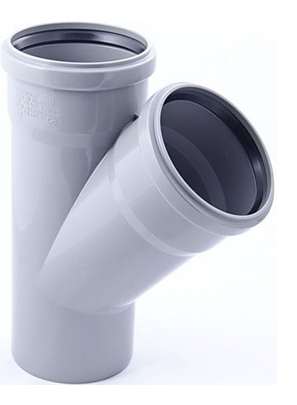 Фирменный соединительный элемент системы Ostendorf для организации разветвлений канализационных трубопроводов под оптимальным углом 45°. Обеспечивает плавное изменение направления потока сточных вод с минимальным гидравлическим сопротивлением.
