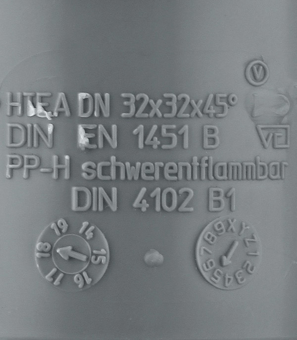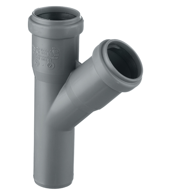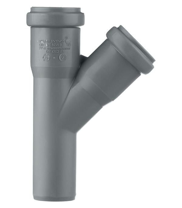 Фирменный соединительный элемент для создания разветвлений в трубопроводах системы Ostendorf. Оптимальный угол 45° обеспечивает плавное изменение направления потока с минимальным гидравлическим сопротивлением.