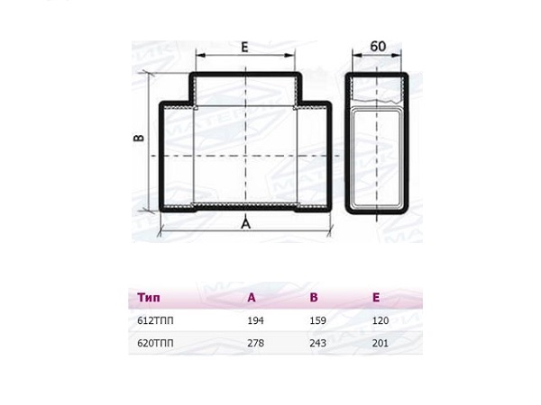 Тройник для прямоугольных воздуховодов 60х120мм пластиковый