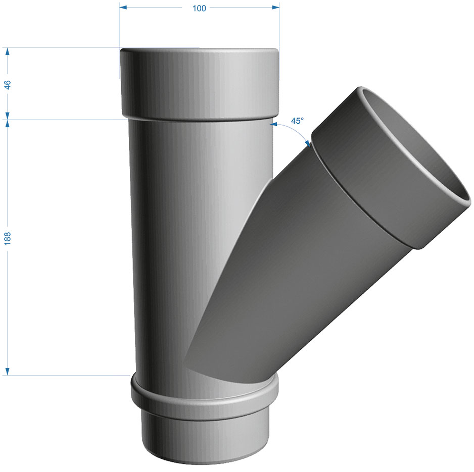 Тройник трубы прежназначен для соединения труб под углом 45 градусов.