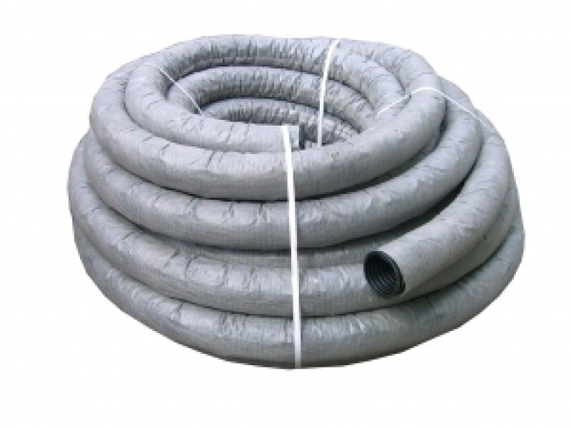 Дренажные трубы изготовлены из полиэтилена низкого давления и поставляются с фильтрующим элементом (термофиксированный геотекстиль)