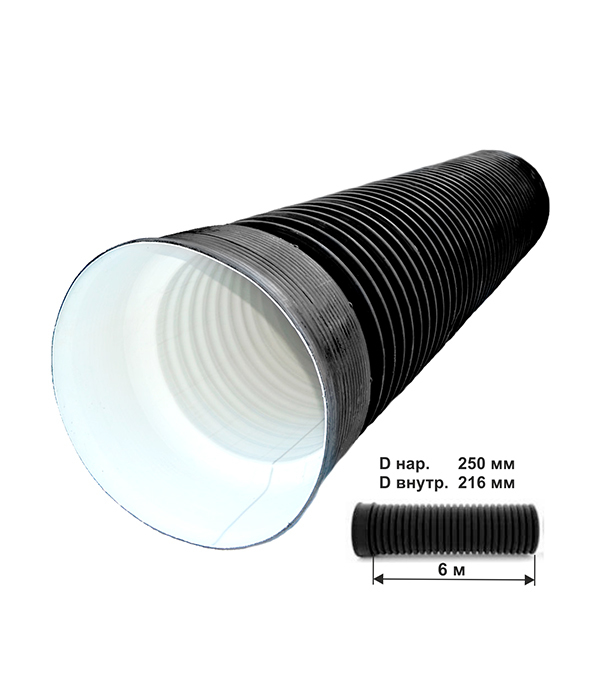Труба двустенная d 250/218 мм 6м SN6 гофрированная с раструбом
