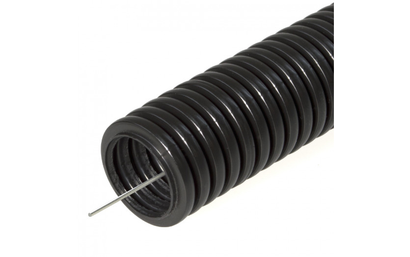 Труба гофрированная ПНД черная с зондом 20мм 100м/уп предназначена для защиты проводов и кабелей при прокладке сложных систем и трасс. Промрукав защищает провода от механических повреждений, агрессивного воздействия окружающей среды и обеспечвает пожарную безопасность электропроводки.