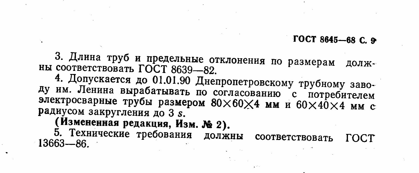 Профильные трубы, изготовленные согласно ГОСТ 13663-86 / ГОСТ30245-2003, 380-2005 / ТУ 24.20.1-001-57532596-2025