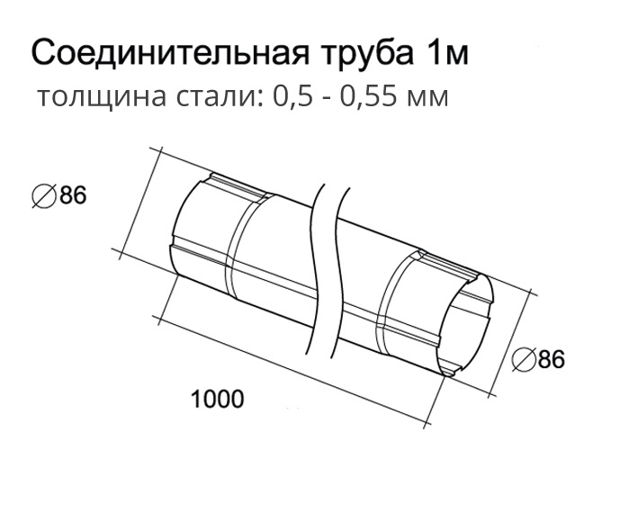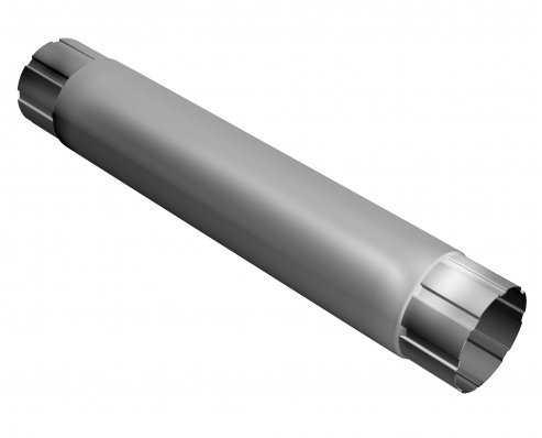 Водосточная соединительная труба длиной 1 метр используется как соединительный элемент водосточной системы между коленами трубы и как дополнительный элемент водосточной трубы, в том случае, когда нерационально применять трубу длиной 3 метра. Труба обжата с двух сторон, что позволяет использовать трубы по 0,5 метра.