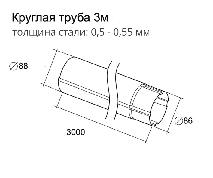 Водосточная труба - это элемент водосточной системы, предназначенный для вертикального стока воды из системы желобов. Внешний фальцевый шов обеспечивает ровную внутреннюю поверхность, что препятствует возникновению заторов в трубе.