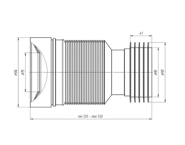 Удлинитель гибкий для унитаза выход в канализацию 110мм длина 225-520мм. Для чугунных труб