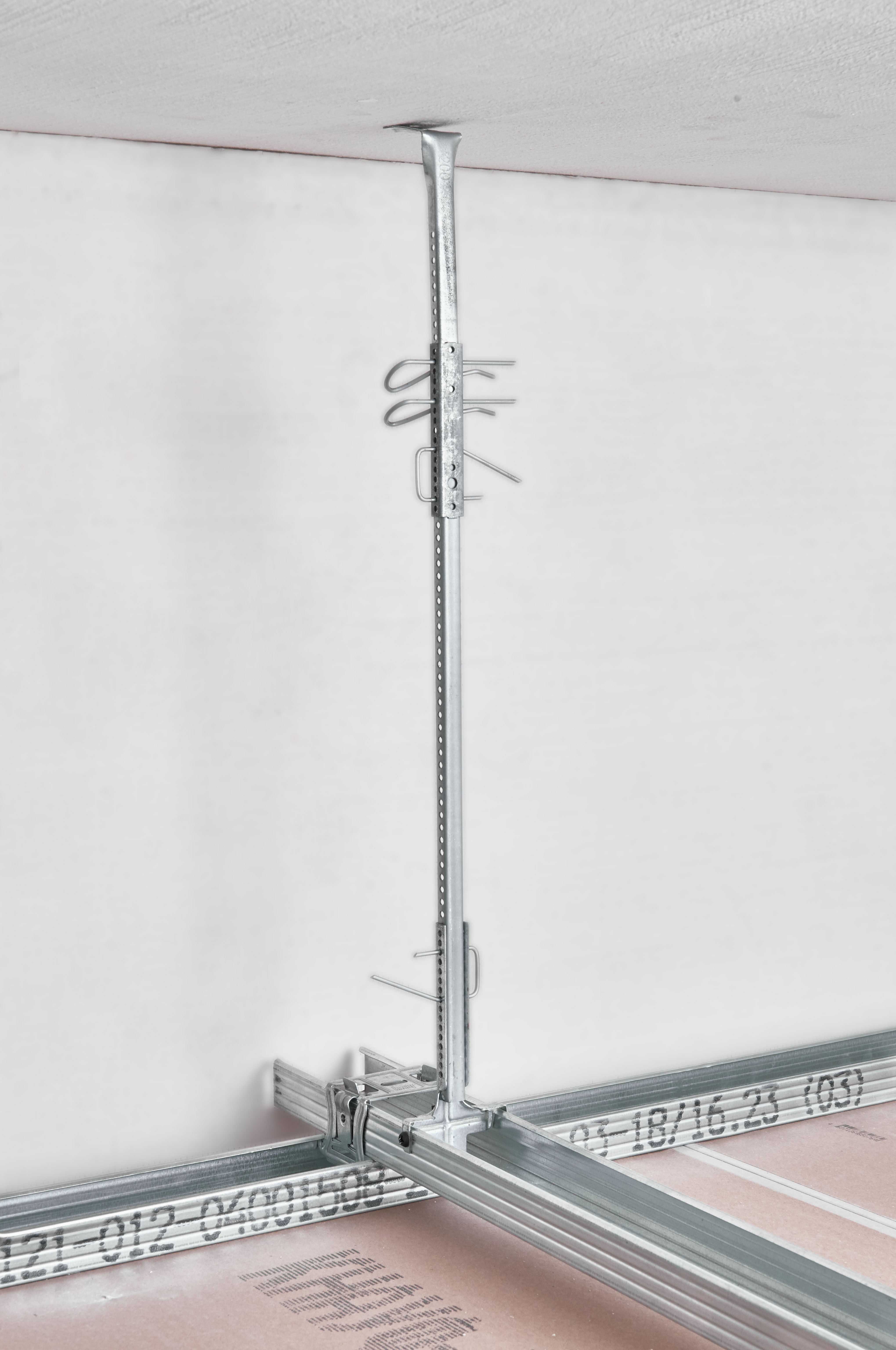 Крепление осуществляется с помощью Нониус-соединителя и Нониус-шплинта. Благодаря сплошной перфорации применение Нониус-удлинителя позволяет достигнуть более точной нивелировки высоты потолка.