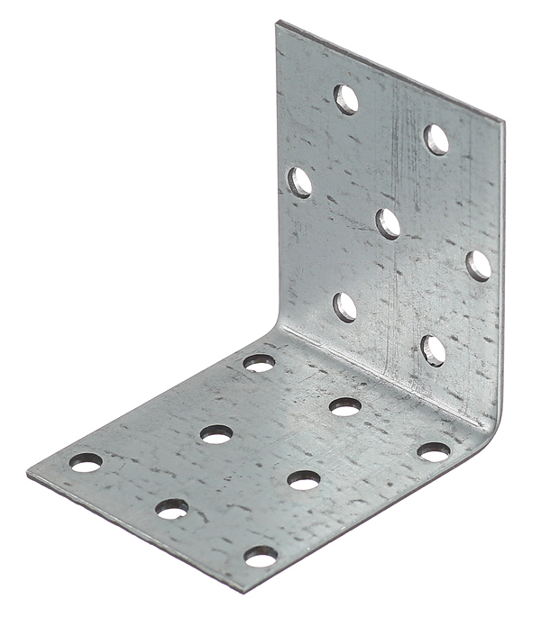 Позволяет образовать прямой угол между элементами крепления и имеет отверстия одинакового диаметра на обеих сторонах, что отличает их от других крепежных уголков. Уголок крепежный равносторонний оцинкованный (KUR) также широко применяется для крепления деревянных конструкций к основанию из других материалов, таких как бетон, кирпич или металл.