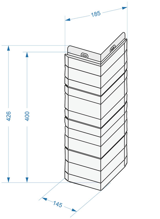 Углы необходимо устанавливать последовательно после завершения монтажа каждого ряда. Нижний угол ставится на стартовый угол, соответствующий коллекции панелей.
