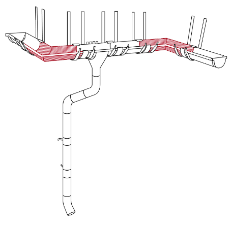Внутренний угол желоба - это элемент водосточной системы, предназначенный для изменения направления движения воды по водосточному желобу и монтируется на внутренних углах кровли. Угол желоба производится бесшовным способом, что обеспечивает жесткость, герметичность и отличную гидродинамику.
