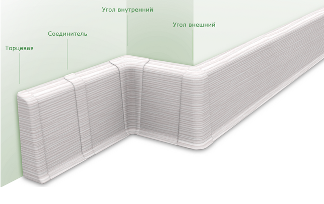 Внешний (наружный) угол предназначен для соединения плинтуса во внешних углах, а также выполняет декоративную функцию.